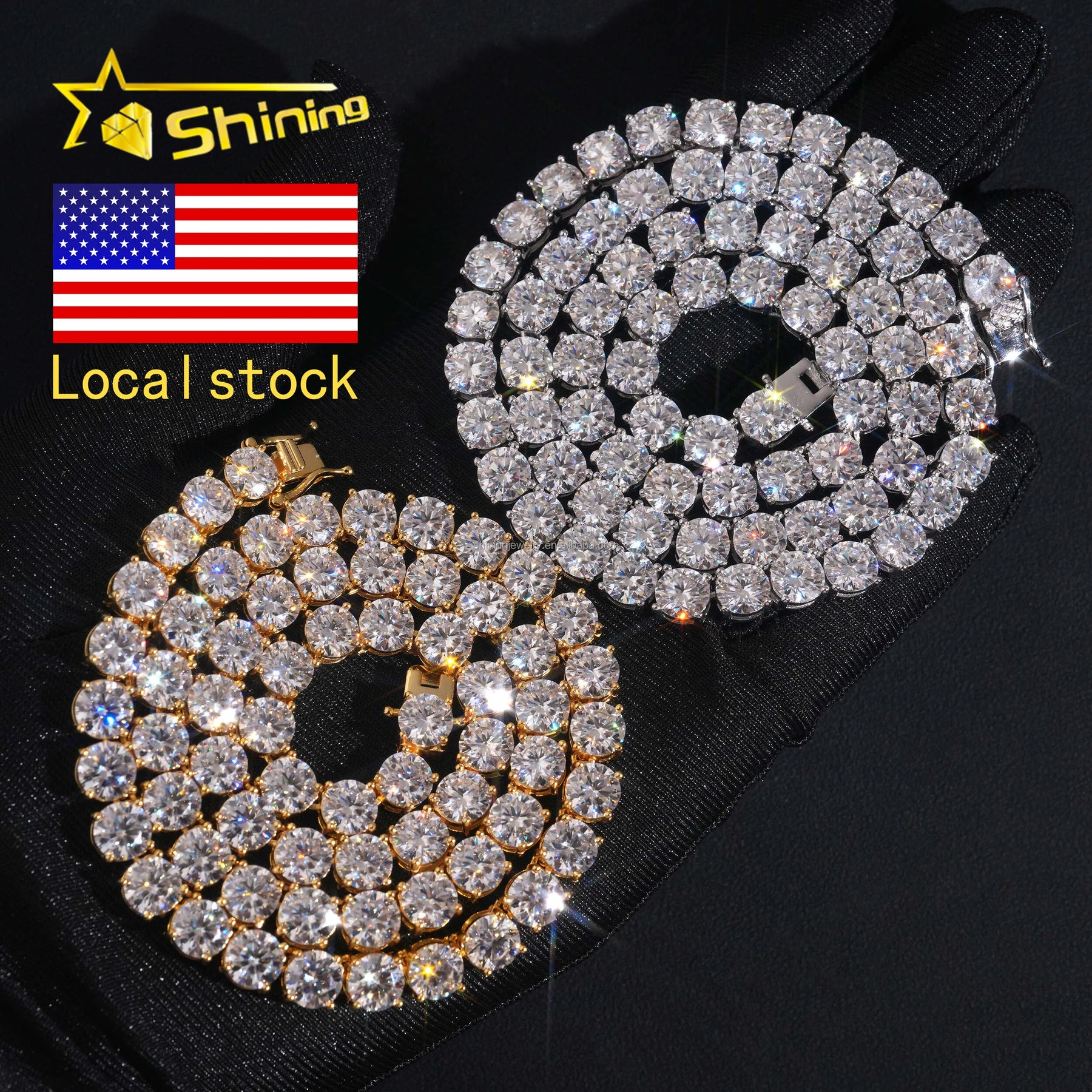 In Stock Ship in USA Warehouse Hip Hop Fashion Jewelry FL Moissanite Tennis Chains S925 Silver Iced Out Tennis Chain & Bracelet