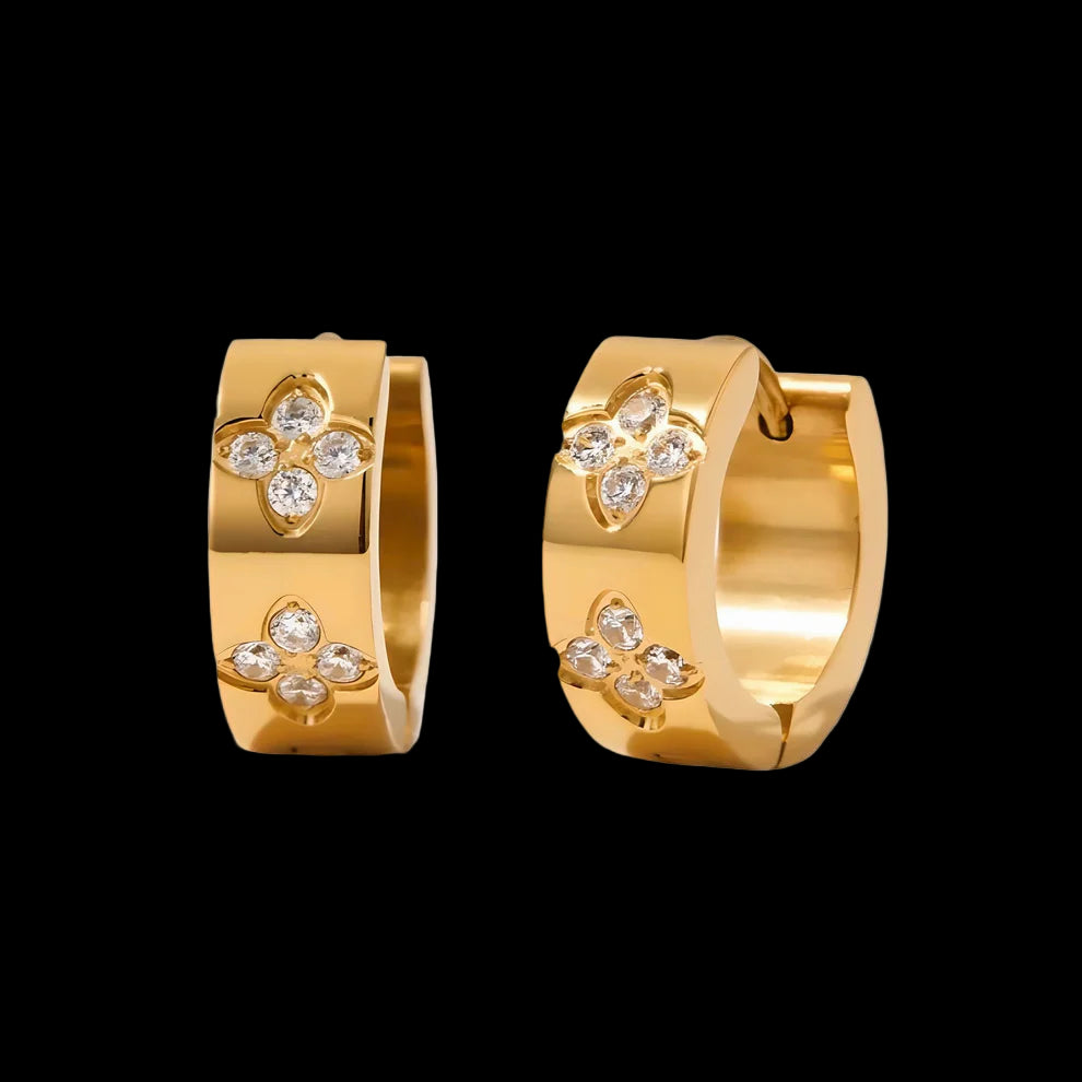 Elevate your everyday elegance with these refined CZ Clover Huggies. Crafted from durable 316L stainless steel and finished with luxurious 18K gold plating, these earrings offer timeless sophistication at an accessible price point. The sparkling cubic zirconia stones catch light beautifully, while the classic clover design adds a touch of refined charm. Perfect for layering or wearing alone, these huggies provide comfortable, secure wear for all-day confidence.